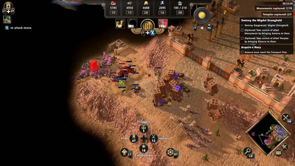 Όπως υποσχέθηκα, ήρθε η ώρα να μιλήσουμε για το gameplay. Θα μπω κατευθείαν στο ψητό. Το Age of Mythology: Retold κάνει μία σχεδόν εξαιρετική μετάβαση στο Xbox Series X. World’s Edge και Forgotten Empires έχουν κάνει εξαιρετική δουλειά εκσυγχρονίζοντας το παιχνίδι, χωρίς να χαλάσουν τη συνολική εμπειρία και αίσθηση του να παίζεις Age of Mythology, διότι δεν προέβησαν σε μεγάλες αλλαγές. Η αύξηση του population και τα μηνύματα ότι πλησιάζουμε στο ταβάνι του, η δυνατότητα επαναχρησιμοποίησης των θεϊκών δυνάμεων, η δυνατότητα στοχευμένης και όχι αυτόματης χρήσης των δυνάμεων των μυθικών πλασμάτων, η αέναη αύξηση της θεϊκής χάρης (favor) και η εισαγωγή -στο campaign- συγκεντρωτικού συστήματος διαχείρισης πόρων ανάλογα με την εποχή που θέλουμε να μεταβούμε ή την τακτική μας (επιθετική, παραγωγή μυθικών units, εμπορική κλπ.) αποτελούν μερικές από τις κύριες αλλαγές που έκαναν οι developers. Αλλαγές, που σε συνδυασμό με τα accessibility features δεν αλλάζουν άρδην τη φύση του gameplay, αλλά το φέρνουν στο σήμερα. Στις περισσότερες των περιπτώσεων είναι πετυχημένες με αποτέλεσμα όχι μόνο να μην αλλοιώνεται η εμπειρία και οι μοναδικές gameplay προσωπικότητες του κάθε πολιτισμού, αλλά να ενισχύονται λιθαράκι με το λιθαράκι. Τρανταχτό παράδειγμα είναι η αύξηση του population που ήταν αναγκαία για όσους και όσες ήθελαν να δημιουργήσουν τη μεγαλύτερη δυνατή στρατιά και κατ’ επέκταση μία πιο φαντασμαγορική μάχη. Σε άλλες περιπτώσεις, όμως, οι αλλαγές έχουν μικρότερο impact, χωρίς να είναι απαραίτητα κακό. Για παράδειγμα, το συγκεντρωτικό σύστημα διαχείρισης πόρων, αν και είναι κάτι που δεν χρησιμοποίησα ιδιαίτερα, δεν μπορώ να πω ότι άλλαξε την εμπειρία μου και θεωρώ ότι προστέθηκε περισσότερο για λόγους ευκολίας και προσέλκυσης μεγαλύτερου κοινού που ενδεχομένως να μην είναι εξοικειωμένο με τέτοιου είδους παιχνίδια. Win-win situation θα έλεγα, όμως για αυτόν ακριβώς το λόγο (την προσέγγιση μεγαλύτερου κοινού) θεωρώ σημαντική παράλειψη τον εκσυγχρονισμό του tutorial.