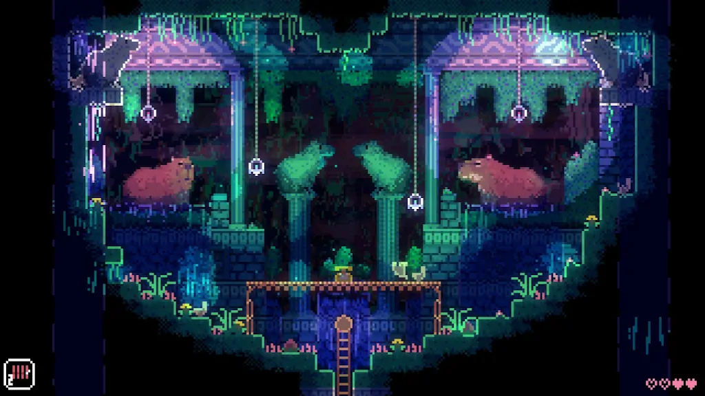 Άρα τι μας καθοδηγεί ενώ υπάρχει τέτοια έλλειψη από objective markers; Το ένστικτο; Οι αδιέξοδοι; Τα ατέλειωτα όμορφα περιβάλλοντα που σε προσκαλούν να τα εξερευνήσεις; Όλα τα παραπάνω θα πω εγώ! Έχουμε ένα masterclass της ανακάλυψης, όπου δεν είναι δυνατόν να αρνηθείς την πρόσκλησή του και το οποίο θα σε ανταμείψει με τους πιο απρόσμενους τρόπους. Οι περισσότερες σπαζοκεφαλιές σκέψης είναι περιορισμένες σε ατομικά δωμάτια, πολλές φορές που σε παγιδεύουν μέσα τους, με τον μόνο τρόπο διαφυγής να είναι η παράδοξη σκέψη, συνήθως εκτός των ορίων της ως τότε φαντασίας σου και σίγουρα έξω από κάθε κουτί της λογικής που μπορεί να είχες ως τότε. Τότε είναι που προκύπτει η ανακάλυψη, μια φυσική λαμπίτσα πάνω από το κεφάλι σου εμφανίζεται καθώς κατανοείς με διαφορετικό τρόπο τους κανόνες που διέπουν το σύμπαν του πηγαδιού. Αυτές οι στιγμές του «εύρηκα!» είναι ο γάντζος που έχει αφήσει απλόχερα το παιχνίδι σε κάθε του puzzle και στην πραγματικότητα είναι η αληθινή πρόοδος του παίχτη. Στα περισσότερα παιχνίδια του είδους συνήθως τέτοιες νίκες έρχονται μετά την απόκτηση κάποιου νέου εργαλείου, που με τη σειρά του θα μας δώσει πρόσβαση σε νέες περιοχές και μέρη. Εκεί φαίνεται η κρυφή νίκη του Animal Well ενάντια στους προγόνους του, τα εργαλεία που σου δίνει είναι ομολογουμένως άχρηστα και αχρείαστα όταν τα αποκτάς, όμως με τη μυστική του ιεροτελεστία σιωπηλών ενδείξεων και αόρατων μαθημάτων ανακαλύπτεις χρήσεις και λειτουργείες που ενώ ήταν εκεί από την αρχή, εμφανίζονται ευχάριστα και απρόοπτα σε σημεία όπου πριν λίγες στιγμές σκεφτόσουν «μα δεν μπορεί να υπάρχει διέξοδος από εδώ». Έτσι όταν επέστρεφα στα σημεία του χάρτη τα οποία θρασύτατα βιάστηκα να βαφτίσω «αδιεξόδους» ανακάλυπτα για άλλη μια φορά πόσο βαθύ είναι αυτό το πηγάδι.