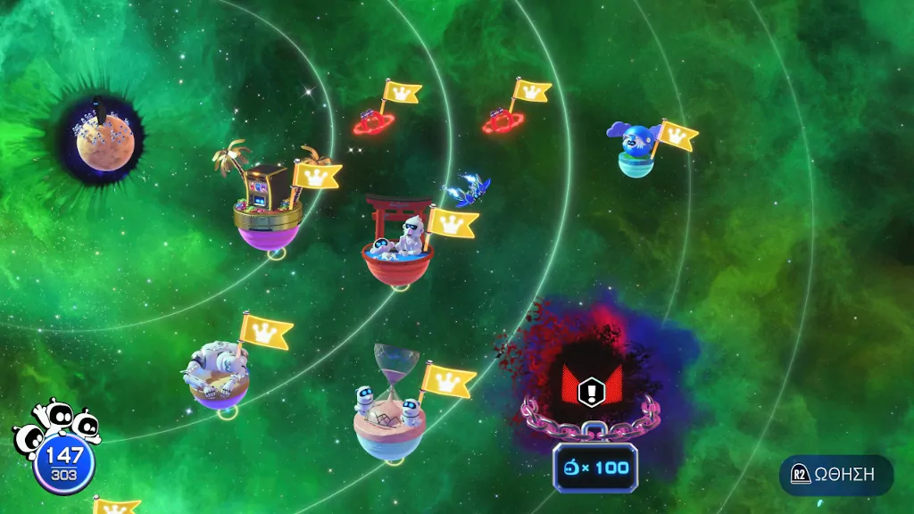 Το ότι το ASTRO BOT αποδεικνύεται αισθητά πιο supersized παιχνίδι, όμως, δεν οφείλεται στην ύπαρξη ενός υποτιθέμενου σεναρίου στο υπόβαθρο, αλλά στη δομή του και στις χαρούμενες εικόνες του. Η Team Asobi άσκησε το πατρογονικό της δικαίωμα να επαναφέρει αρκετά στοιχεία έτοιμα από το ήδη καλοδουλεμένο ASTRO’s Playroom, ούτως ώστε να ασχοληθεί περισσότερο αυτή τη φορά με τη γιγάντωση του παιχνιδιού της όσον αφορά των αριθμό των levels που προσφέρει, την ποικιλομορφία τους και τα νέα mechanics. Ως αποτέλεσμα, στο ASTRO BOT επισκεπτόμαστε 6 διαφορετικούς γαλαξίες και 70φεύγα levels (χωρίζονται σε main πίστες, στα πιο αιχμηρά platforming challenges και στα απρόσμενα secret levels), απαιτώντας να διασώσουμε άνω των 300 bots και χρησιμοποιώντας καμιά 10αριά διαφορετικά power-ups στον δρόμο μας. Πάρτε όλο αυτό και πολλαπλασιάστε το με την αγάπη για τα σημεία-σταθμούς της PlayStation ιστορίας και ιδού το αποτέλεσμα.