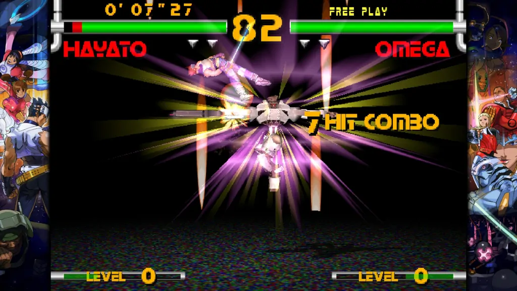 Για μένα προσωπικά, τα μεγάλα «ψάρια» της συλλογής είναι τα Capcom vs SNK. Το Capcom VS SNK 2: Mark of the Millennium 2001 μάλιστα συμμετέχει ακόμα σε διάφορα παγκόσμια τουρνουά όπως το EVO. Ας ξεκινήσουμε, όμως, αρχικά με το Capcom vs. SNK: Millennium Fight 2000 Pro. Ο τρόπος λειτουργίας του παιχνιδιού βασίζεται στο “ratio”, ένα rating σύστημα όπου η αντοχή κάθε χαρακτήρα κυμαίνεται από 1 έως 4. Μπορείτε να επιλέξετε ομάδα μέχρι και τεσσάρων χαρακτήρων εφόσον το συνολικό ratio τους είναι ίσο ή μικρότερο του 4. Δεν είναι πυρηνική φυσική, αλλά σίγουρα ξύπνησα σε μερικούς δυσάρεστες σχολικές αναμνήσεις από μαθηματικά. Μαθηματικά; Μα φυσικά. Στα μαθηματικά, το καρτεσιανό σύστημα συντεταγμένων είναι ένα ορθογώνιο σύστημα συντεταγμένων που χρησιμοποιείται για να προσδιορίσει ένα σημείο στο επίπεδο ή στο χώρο. Οφείλει το όνομά του στον Καρτέσιο (Descartes) που το εισήγαγε. Χωρίς αυτό δεν μπορεί να πραγματοποιηθεί το Hadouken για παράδειγμα. (σ.σ. αν συνεχίζετε να διαβάζετε ακόμα να ξέρετε ότι το εκτιμώ.) Το gameplay χρησιμοποιεί το κλασσικό SNK four-button στυλ και επιπλέον μπορείτε να επιλέξετε το “Groove” της αρεσκείας σας. Το SNK Groove βασίζεται στο Extra mode που διέθετε η σειρά King of Fighters από το King of Fighters ’94 μέχρι και το King of Fighters ’98, ενώ το Capcom Groove βασίζεται στο gameplay στυλ της σειράς Street Fighter Alpha. To roster των χαρακτήρων αποτελείται από χαρακτήρες των σειρών Fatal Fury, King of Fighters, Art of Fighting και Samurai Shodown από μεριάς SNK και Street Fighter και Darkstalkers (μόνο η Morrigan) από μεριάς Capcom. 35 συνολικά, not bad.