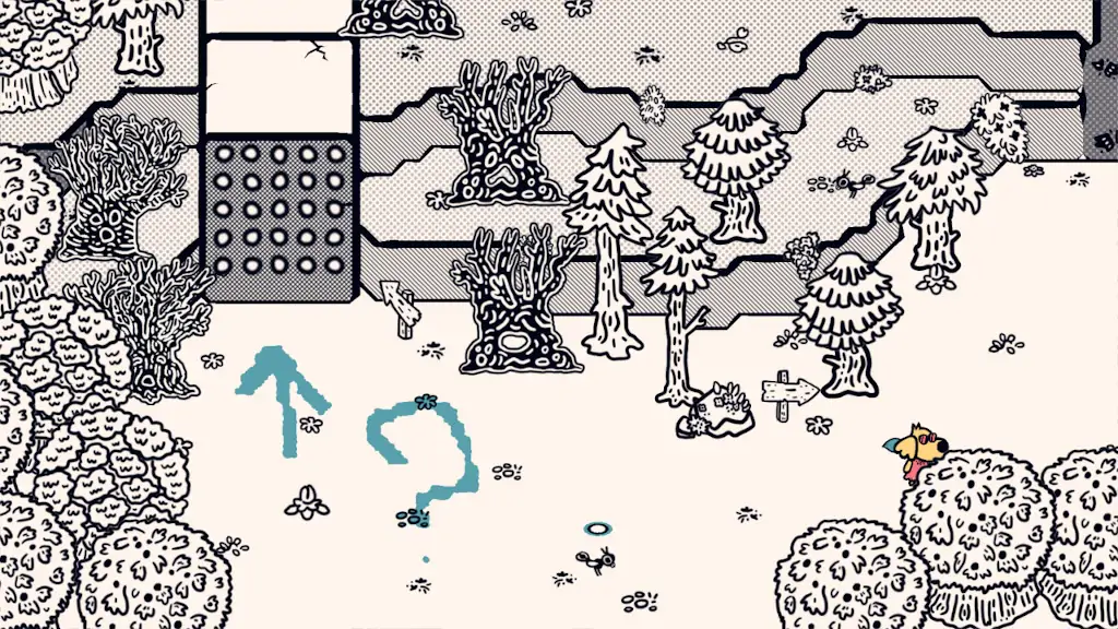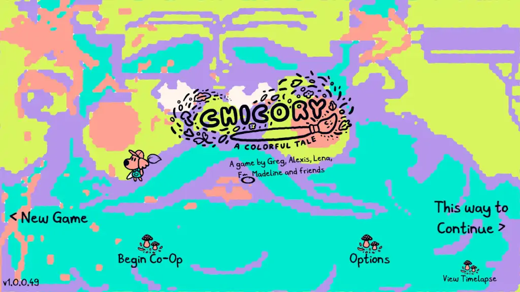 Τα puzzles εισάγονται με ιδανικό Ρυθμό, ισορροπώντας με χάρη το γνωστό και το καινούριο. Οι νέοι μηχανισμοί που προστίθενται στην πορεία δεν προορίζονται μόνο για καινούριες προκλήσεις αλλά δρουν και αναδρομικά αλλάζοντας την αλληλεπίδραση με το μεταφορικό και κυριολεκτικό έδαφος που έχεις ήδη καλύψει. Ένα πολύ μεγάλο θετικό στο design του Chicory είναι τρόπος που χειρίζεται την κινητικότητα. Καθώς ανακαλύπτεις όλο και μεγαλύτερο κομμάτι του χάρτη, αναπόφευκτα αυξάνεται και το backtracking κι έτσι η μετάβαση από οθόνη κινδυνεύει να γίνει όλο και λιγότερο συναρπαστική. Το Chicory λύνει αυτό το πρόβλημα αναβαθμίζοντας, επιταχύνοντας και επεκτείνοντας τους τρόπους που κινείσαι μέσα στον κόσμο του, στις κατάλληλες στιγμές. Κατά συνέπεια, ούτε μια φορά δε δυσανασχέτησα με την επόμενη διαδρομή μου. Ακόμα κι όταν ήξερα ακριβώς τι με περιμένει, ήθελα να δω πώς θα φτάσω εκεί με τις νέες μου δυνατότητες, ποια κρυφά δρομάκια και εκπλήξεις μου ανοίγονται ή πόσο πιο γρήγορα θα φτάσω αυτή τη φορά.