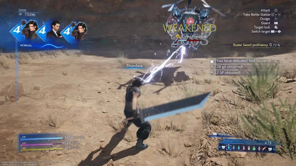 Όταν το σπαθί χρησιμοποιείται παθητικά ή βρίσκεται στην πλάτη του Zack, το Crisis Core συμπεριφέρεται ως ένα ακόμη Final Fantasy game, αφήνοντας τη μαγεία να ανεβεί επί σκηνής. Ξέρετε τώρα, Materia, Summons, Limits Breaks, έννοιες που έχουν καθιερωθεί και επαναχρησιμοποιούνται χρόνια τώρα σε οποιοδήποτε παιχνίδι συγγενεύει άμεσα (Crisis Core) ή και έμμεσα (Kingdom Hearts) με τη σειρά Final Fantasy, οπότε θα ξαφνιαστώ αν δεν τρύπωσαν έστω παράπλευρα στο υποσυνείδητό σας. Από την άλλη, κάτι που ξεχώριζε από γεννησιμιού του το Crisis Core ως μηχανισμός, με ενοχλούσε και συνεχίζει να με ενοχλεί -έστω και λιγότερο χάρις στο Reunion- είναι το DMW. Ένας ψηφιακός κουλοχέρης που μοιάζει με στάμπα στην πάνω-αριστερά γωνία του HUD και λειτουργεί ως ρυθμιστής του ευπρόσδεκτου, κατά τα άλλα, buffαρίσματος του Zack. Πάλι καλά που στο Reunion το «jackpot» του δεν διακόπτει το gameplay, όπως συνέβαινε στον original τίτλο, γιατί δεν θα είχαμε καλά ξεμπερδέματα όταν υπάρχουν τόσα conflicts στα οποία καλούμαστε να συμμετάσχουμε.