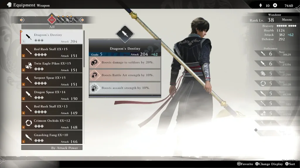 Για να γίνω πιο κατανοητός, αν θέλαμε π.χ. στο One Piece: Pirate Warriors 4 να παίξουμε με διαφορετικές κινήσεις/δυνάμεις θα έπρεπε να αλλάξουμε από Luffy σε Zoro. Εδώ το μόνο που έχουμε να κάνουμε είναι να αφήσουμε το ξίφος μας στη βάση και να κουβαλήσουμε το δόρυ μας, έχοντας συνολικά 10 αξιοποιήσιμα weapon types (Sword, Spear, Gauntlets, Wheels, Podao, Staff, Twin Pikes, Lance, Crescent Blade και Halberd), που πράγματι ξεκλειδώνουν νέες δυνατότητες και δημιουργούν ένα βάθος από επιτρεπτά playstyles.