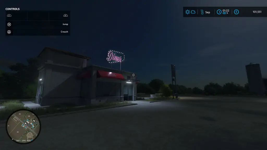Αρχικά, ο τρόμος. Ακόμα δεν έχω καταλήξει αν το πλήρως ανεπαρκές για τις ανάγκες μου tutorial είναι έλλειψη, προσόν της εμπειρίας ή κάποιου είδους φετίχ που μοιράζονται οι δημιουργοί με τους fans. Διαλέγοντας το δεύτερο “επίπεδο” – ουσιαστικά προσποιούμενος ότι έχω κάποια στοιχειώδη εμπειρία – έβαλα τον εαυτό μου σε ένα τρομακτικό πληροφοριακό αδιέξοδο. Πέρασα έτσι τα πρώτα μου σαράντα πέντε λεπτά στο Farming Simulator 22 περιφερόμενος, παίζοντας το game σα να ήταν ένα απίστευτα χειραφετικό open-world adventure με τραγικό platforming. Με αντάρτικους χειρισμούς των μενού κατάφερα εν τέλει να νοικιάσω ένα 4×4 με καρότσα για να κινούμαι με ταχύτητα που θα μου επέτρεπε να μην παίζω αυτό το game μέχρι τα γεράματα. Ένα γενικότερο μοτίβο που θα παρατηρήσετε σε αυτό το review είναι το ότι λόγω της ασχετοσύνης μου με τη σειρά, είμαι αρκετά επιφυλακτικός με την κριτική μου σε διάφορα από τα συστήματα και τις σχεδιαστικές επιλογές. Θεωρήστε αυτή την κριτική κατάλληλη για εσάς αν είστε κι εσείς απολύτως άσχετοι και σκέφτεστε να δοκιμάσετε την τύχη σας με αυτό το σκληροπυρηνικό simulator.