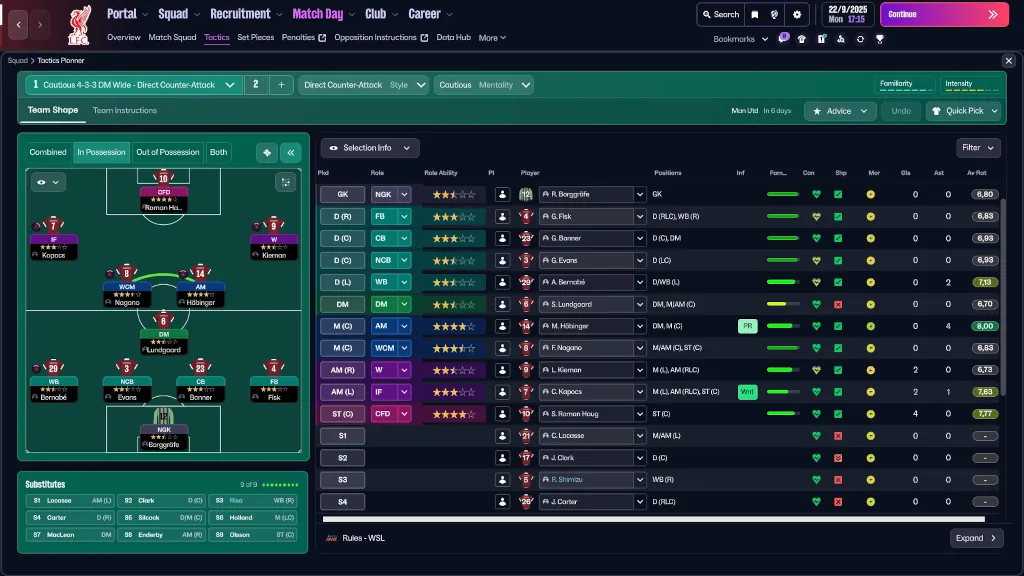 Μία από τις αλλαγές που ομολογώ ότι περίμενα καιρό ήταν αυτή της προσθήκης του γυναικείου ποδοσφαίρου στο παιχνίδι. Όσοι και όσες με γνωρίζουν μπορούν να σας πουν ότι εκτός από φίλαθλος των αντρικών ομάδων της Μπάγερν Μονάχου και Λίβερπουλ, υποστηρίζω και τις γυναικείες ομάδες τους. Συνεπώς, το πρώτο save που έβαλα να παίξω ήταν με την γυναικεία ομάδα της Λίβερπουλ που παίζει στην Women’s Super League, ένα από τα 14 γυναικεία πρωταθλήματα που κοσμούν το παιχνίδι. Η αποτύπωση τους στο Football Manager 26 είναι εξίσου εξαιρετική όπως των ανδρών. Γεγονός αναμενόμενο, μιας και η σειρά φημίζεται για την πληθώρα δεδομένων της. Αυτό που δεν είναι, όμως, εξίσου εξαιρετικό είναι το UI.