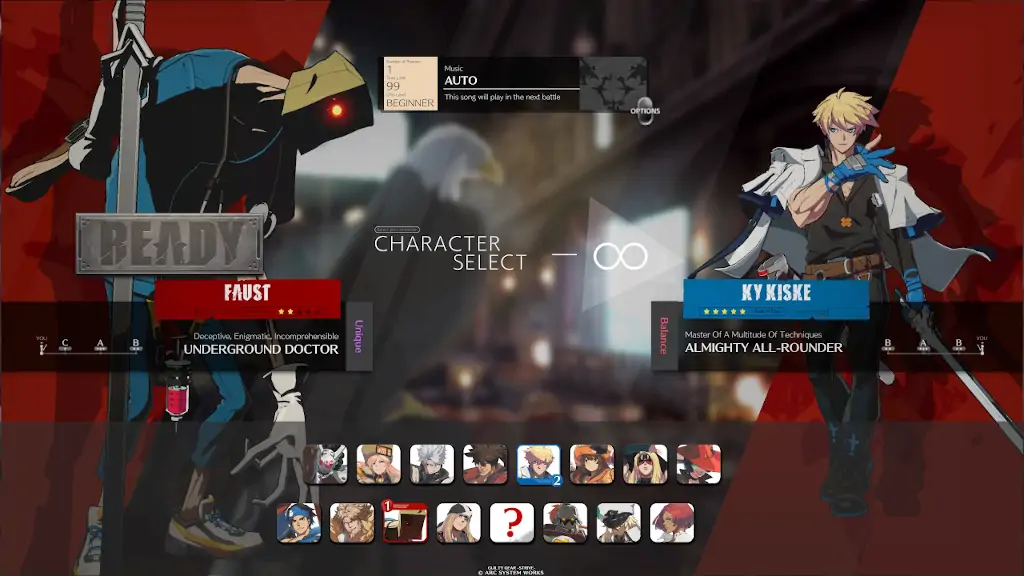 To roster είναι σχετικά αδύναμο όσον αφορά τη ποσότητα με δεκαπέντε χαρακτήρες (+πέντε dlc) αλλά διαφέρουν αρκετά μεταξύ τους καθώς οι developers φρόντισαν να σκεφτούν για ακόμη μία φορά τον όρο “ποικιλία”. Το στοιχείο που τους κάνει μοναδικούς είναι οι special ικανότητες του καθενός, όπως ο Faust που μπορεί να παράγει τυχαία αντικείμενα ή ο Nagoriyuki που διαθέτει μια επιπλέον μπάρα αίματος την οποία πρέπει να έχετε υπόψιν σας καθ’όλη τη διάρκεια του match. Αυτό προσφέρει τεράστιο βάθος στο gameplay με το σύστημα μάχης να αποτελεί πρόκληση ακόμα και για τους πιο hardcore του είδους. Για να καταλάβετε, αν θέλετε να γίνετε masters δεν θα δυσκολευτείτε με τα inputs αλλά με την ιδιομορφία του κάθε χαρακτήρα.