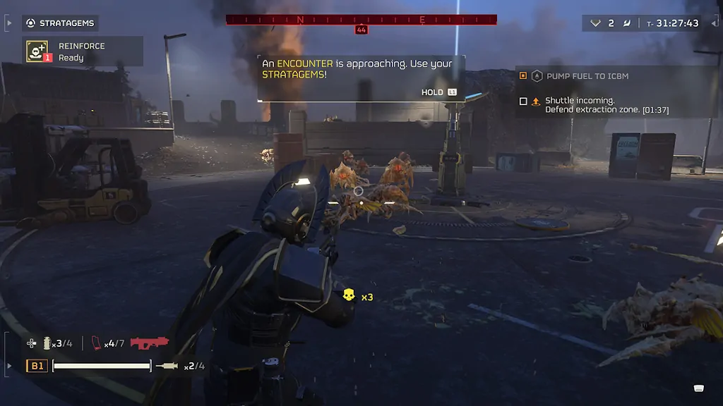 Το τελευταίο κομμάτι-κλειδί για την επιτυχία κάθε δημοκρατικού Helldiver είναι η επιλογή σωστών stratagems. Όταν, αναπόφευκτα, αριστεύσεις στη εξέταση για να γίνεις Helldiver, θα αποκτήσεις το δικό σου διαστημόπλοιο, δίνοντάς σου πρόσβαση στο πιο δυνατό μηχανισμό στο παιχνίδι. Τα stratagems είναι στην ουσία οι πολλαπλοί τρόποι που το διαστημόπλοιο σου μπορεί να σε βοηθήσει στο πεδίο της μάχης. Πυρομαχικά, όπλα, sentry turrets και orbital strikes, όλα είναι διαθέσιμα με το πάτημα ενός κουμπιού. Ή, μάλλον, μίας σειράς από κουμπιά. Το κάθε stratagem έχει το δικό του «κωδικό», έναν συνδυασμό από inputs στα βελάκια του χειριστηρίου, που απαιτείται από τον παίκτη πριν την ενεργοποίησή του. Όσο περισσότερο χρησιμοποιείς ένα stratagem, τόσο πιο γρήγορο και εύκολο θα είναι να το καλέσεις σε επόμενες αποστολές, όχι επειδή το παιχνίδι στο επιτρέπει, αλλά επειδή εσύ ο ίδιος θα έχεις εξοικειωθεί με τα inputs. Είναι ένας μικρός αλλά αισθητός τρόπος να δώσεις στον παίκτη την δυνατότητα να «εκφράσει» την επιλογή του, όχι μέσα από ένα pause menu, αλλά όντως παίζοντας, με όλη τη σημασία της λέξης.
