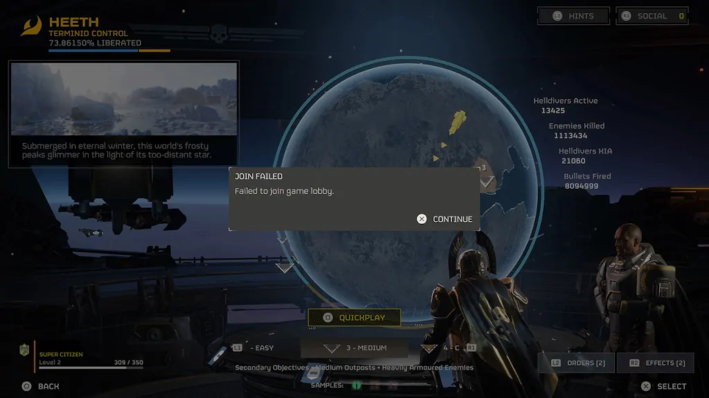 Κλείνοντας, οφείλω να μιλήσω για τα τεχνικά προβλήματα που αντιμετώπισα στο Helldivers 2, παίζοντας στο PS5. Αν δεις μία βαθμολογία χαμηλότερη από αυτή που περίμενες, διάβασε εδώ. Το μεγαλύτερο θέμα που αντιμετώπισα ήταν παλιά καλά crashes, μέσα και έξω από αποστολές. Ξαφνικά το παιχνίδι πάγωνε, έσβηνε και έχανα όλη τη πρόοδο που είχα κάνει στη περίπτωση που βρισκόμουν σε mission. Συνεργάτης με τα crashes, είναι και το άθλιο, ΑΘΛΙΟ, σύστημα που θέλουν να περάσουν ως matchmaking. Είναι απαράδεκτο σε ένα παιχνίδι με objectives που απαιτούν δύο ή παραπάνω παίκτες, το quickplay σύστημα σου να αποτυγχάνει κάθε φορά. Δεν κατάφερα ποτέ να βρω ομάδα αυτόματα μέσω του matchmaking ή να με βρει άλλος παίκτης και αναγκαστικά έπρεπε να ψάξω χειροκίνητα κάθε πλανήτη για groups που βρίσκονταν στη μέση της αποστολής τους, προσευχόμενος ότι δεν θα πέσω πάνω σε εχθρούς που δεν προορίζονται για το level μου. Φτιάξτε το matchmaking, το παιχνίδι Π Ρ Ε Π Ε Ι να παιχτεί σε groups.