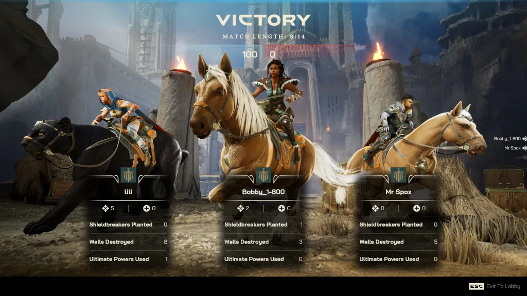 Το Shieldbreaker ξεκλειδώνει περίπου 3 λεπτά από την έναρξη ενός αγώνα. Κατά τη διάρκεια αυτών, οι παίκτες χρειάζεται να κάνουν loot τοποθεσίες του χάρτη και να μαζέψουν κρυστάλλους για τις αναβαθμίσεις τους σε όπλα ή σε πανοπλία. Θεωρώ πως η επιλογή αυτή θα είχε μεγαλύτερη βαρύτητα αν υπήρχε ρίσκο, καθώς και οι δύο ομάδες είναι αναγκασμένες να περιμένουν και έτσι δεν μπορούν να αλλάξουν τη στρατηγική τους σε μεγάλο βαθμό.