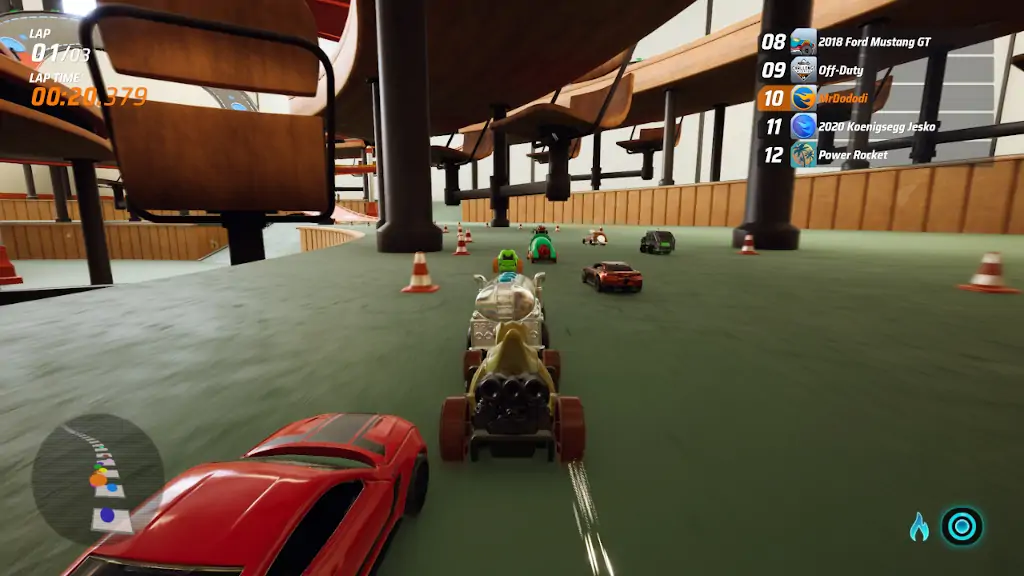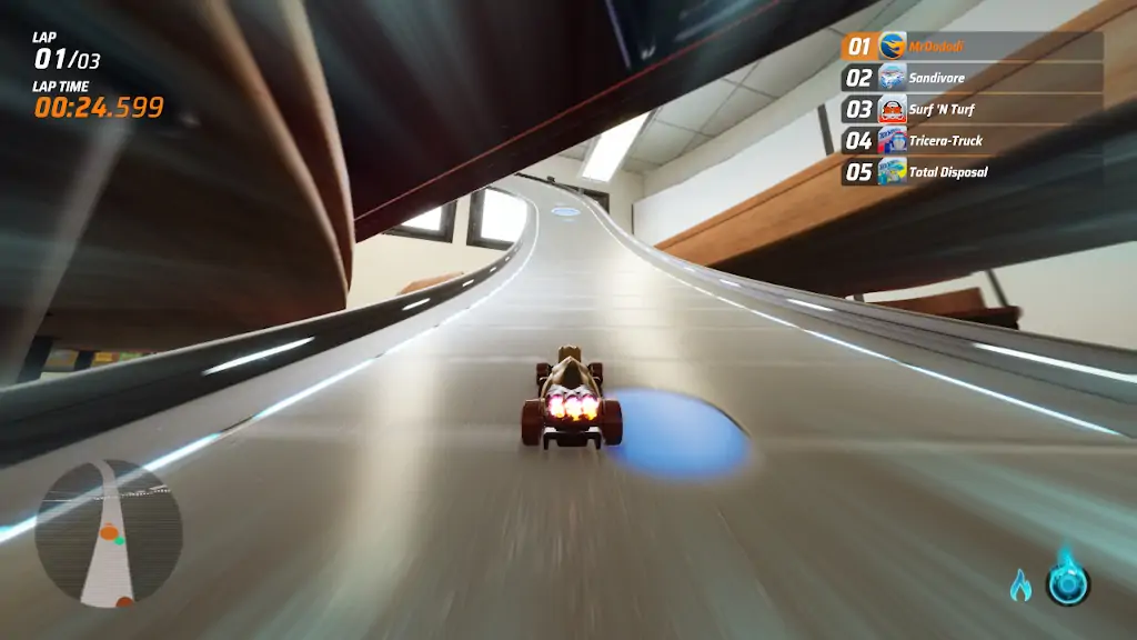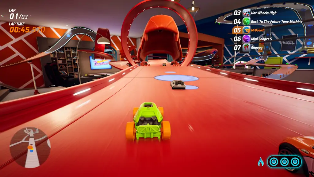Υπάρχουν αρκετά οχήματα που ξεκλειδώνετε όσο παίζετε, τα οποία διαφοροποιούνται μεταξύ τους τόσο στα στατιστικά τους όσο και στο τρόπο που πραγματοποιούν turbo boost. Οι διαφορές φαίνονται αμέσως, καθώς αλλιώς συμπεριφέρεται ένα οχηματάκι με full στατιστικά στο χειρισμό έχοντας κρατήματα και αλλιώς ένα αυτοκινητάκι που διαθέτει υψηλή ταχύτητα και σε μια στροφή καρφώνεται στον τοίχο του υπόγειου man cave. Στο turbo boost κάποια οχήματα διαθέτουν μία μπάρα, άλλα δύο, άλλα τρεις, άλλα τέσσερις και όπως καταλαβαίνετε, ξέρουμε να μετράμε εδώ στο site. Κάποια διαθέτουν μπάρα boost η οποία καταναλώνεται μόνο όσο κρατάτε το πλήκτρο και όχι με το απλό πάτημα που διαθέτουν τα προαναφερθέντα.