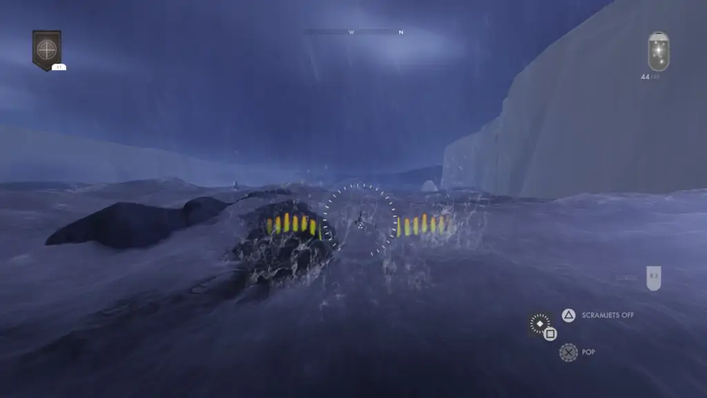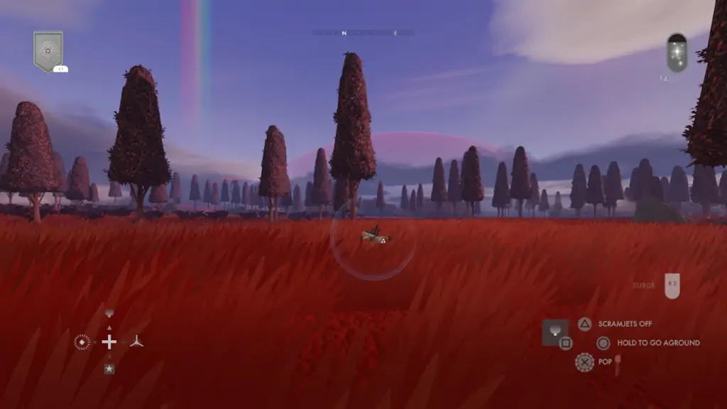Παρότι η πλοήγηση του jet είναι ο κεντρικότερος μηχανισμός της εμπειρίας, τον βρήκα συχνά προβληματικό. Ο χειρισμός έχει αργή αίσθηση με επιβραδυμένη απόκριση και παρότι κατανοώ τους λόγους για τους οποίους θα μπορούσε να έχει ρυθμιστεί έτσι ηθελημένα, τελικά οδηγεί σε συνεχή τρακαρίσματα με λόφους, δέντρα και ένα σωρό άλλες ανώμαλες επιφάνειες. Δε βοηθάει που οι στροφές εκτελούνται με τόσο αφύσικο τρόπο. Πολλές φορές η αίσθηση της ορμής και της ταχύτητας του σκάφους μου έδινε την ενστικτώδη εντύπωση ότι μπορώ να περάσω μια ανηφόρα, μόνο και μόνο για να κολλήσω στα μισά με τη μύτη του σκάφους να χτυπάει ξανά και ξανά στο έδαφος. Υπάρχει ένας ενδιαφέρον μηχανισμός διαχείρισης της αστάθειας των κινητήρων που λειτουργεί περίπου σα δείκτης υπερθέρμανσης, άλματα και ελιγμοί που όμως ποτέ δεν δένουν αισθητηριακά σε μια ιδιαίτερα απολαυστική πιλοτική εμπειρία. Όταν λειτουργεί είναι απλώς ευχάριστο, κι όταν δε λειτουργεί είναι πολύ εκνευριστικό. Στηρίζω την απόφαση να υπάρχει περιθώριο για βελτίωση και τελειοποίηση έναντι του να γίνει μια αυτόματη, ανεγκέφαλη δραστηριότητα, αλλά αισθάνθηκα επανειλημμένα πως είναι δύσκολο για τους λάθος λόγους.