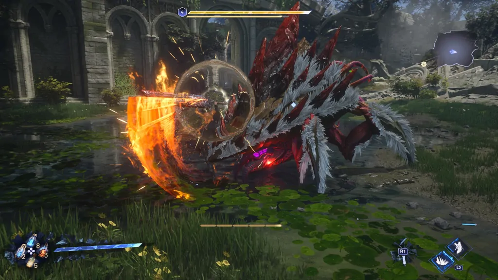 Το combat είναι ίσως το μοναδικό κομμάτι που είχε προεξοφλήσει το Lost Soul Aside και που με φέρνει στην εύκολη θέσει να ισχυριστώ πως ανταποκρίνεται στις προσδοκίες που είχε θέσει, αν βεβαίως αυτές οι προσδοκίες περιστρέφονταν γύρω από ένα υψηλών παλμών gameplay, με τα καθιερωμένα πια -τρομάρα μας- υπερμεγέθη boss fights, και που οι χώροι όπου διαδραματίζονται οι μάχες φέρουν ελάχιστες πιθανότητες να μη διαλυθούν από τη σύγκρουση υπέρογκων -και υπέροχων, why not- δυνάμεων.
