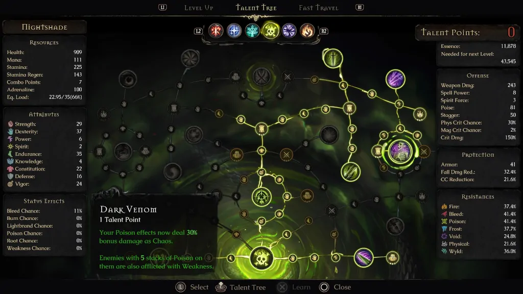 Στο δικό μου run ξεκίνησα με Nightshade και στη συνέχεια το εμπλούτισα με skills από Flameweaver και Vanguard, φτιάχνοντας έναν γρήγορο δολοφόνο με φλογερά boosts όταν χρειαζόταν.