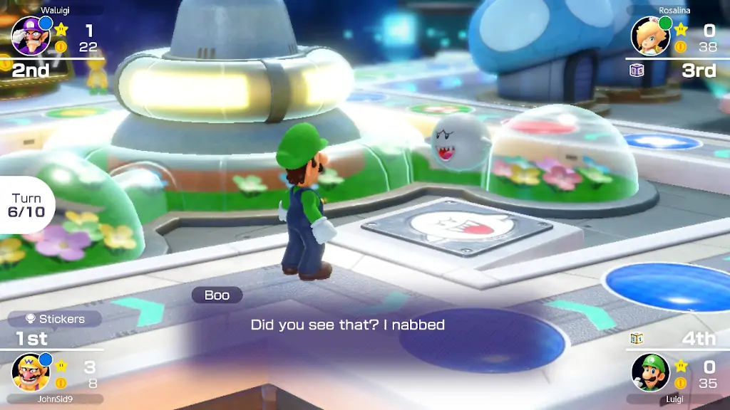Κάπου εκεί σπάει συνήθως η διάθεση ενός μέλους, που αρχίζει να διαισθάνεται την αδικία και απειλεί με Joy-Cons τους τριγύρω του. Τη συγκεκριμένη νοοτροπία θα τη βρίσκω πάντα άστοχη και σε αυτή αποδίδω όλες τις ευθύνες δημιουργίας δύο στρατοπέδων παικτών: οι μεν που λατρεύουν το πλήρες party game, τις ζαριές, τις ανταλλαγές νομισμάτων και τα φανταχτερά κόλπα του ταμπλό, όπως και οι δε που προτιμούν να μη χαλάσουν τη ζαχαρένια τους και να αφοσιωθούν στο mode που προσφέρει mini games δίχως το ενδιάμεσο ταξίδι αφετηρίας-αστεριών. Ενώ εξακολουθώ να ανέχομαι το σύστημα λόγω διασκέδασης και σεβασμού προς τους δημιουργούς, αλλά καταλαβαίνω και τους δεύτερους, εφόσον το party mode σπαταλά πολλαπλάσιο χρόνο εντός του board από ότι στα πιο δραστήρια mini games.
