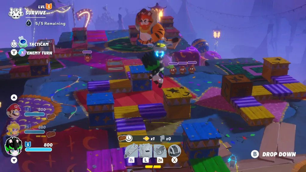 Παρ’ ότι το content εντός του Tower of Doooom είναι μόνο μία σειρά από μάχες, η ευχαρίστηση που αυτές προσφέρουν δεν έχει εικόνα ίσιου καρδιογραφήματος. Αυτό επιτυγχάνεται χάρις στο ότι κάθε δοκιμασία θα φιλοξενηθεί και σε διαφορετική (τυχαία ξανά) πλατφόρμα, με διαφορετικό στόχο (Defeat Enemies, Reach the Area, κλπ) και με ανακατεμένα enemy units. Από τη στιγμή που απευθύνεται σε αυτούς που θέλουν να αποφύγουν τις βόλτες ή σε όσους θέλουν μία on-the-go διαδρομή προς το υπέροχο turn-based gameplay του δεν χρειάζεται και κάτι άλλο, εφόσον η ροή αυτού διακόπτεται μονάχα από τις επιστροφές στο hub και από την προετοιμασία του εκλεκτού team για το επόμενο challenge. Από κει και πέρα, όλα όσα μας διασκέδασαν σε αυτό το 50% του Mario + Rabbids Sparks of Hope, είναι παρόντα και αποκτώνται πίσω γρήγορα. Δεν θα λέγαμε όχι σε κανένα νέο enemy type, αν με ρωτάτε, αλλά η αφιλτράριστη μίξη των όσων αντιμετωπίσαμε στο campaign είχε και αυτή τη χάρη της.