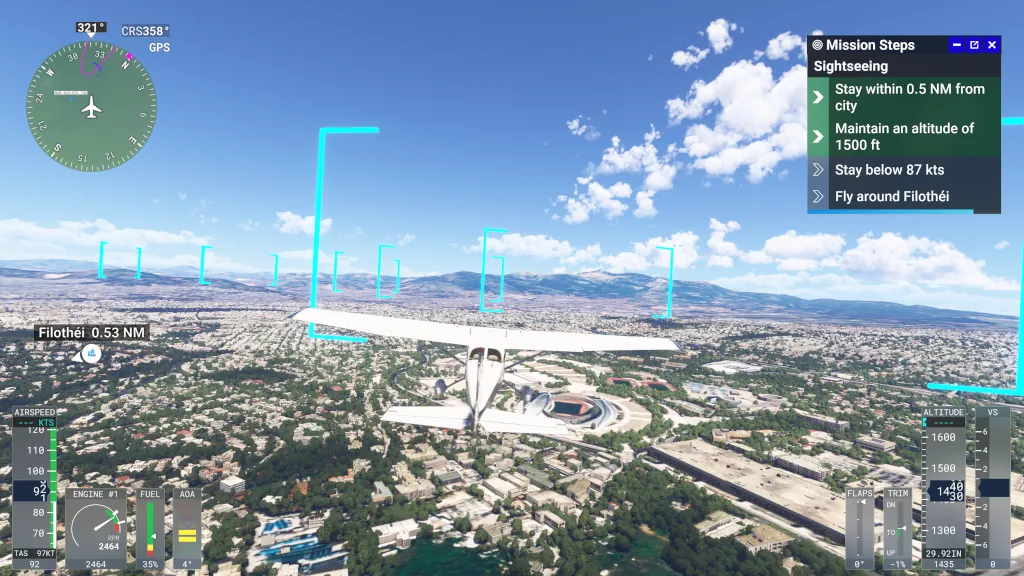 Προτού όμως προχωρήσω και αρχίσω να μιλάω για τη σχέση αγάπης-μίσους που έχω με αυτό το παιχνίδι, καλό είναι να ξεκαθαρίσω ορισμένα δεδομένα, καθώς υπάρχουν διάφορες μεταβλητές που μπορούν να αλλάξουν άρδην την εμπειρία. Το Microsoft Flight Simulator 2024 αντλεί δεδομένα από τους χάρτες Bing, και με την A.I. του Microsoft Azure δημιουργεί όσο πιο ρεαλιστικές 3D αναπαραστάσεις της Γης μπορεί. Με τη βοήθεια του cloud computing πραγματοποιείται το render των γραφικών, ενώ λαμβάνει τα δεδομένα του καιρού σε πραγματικό χρόνο απεικονίζοντάς τα μέσα στο game. Για να συμβούν όλα τα παραπάνω σωστά και το παιχνίδι να τρέχει κανονικά απαιτείται μία καλή σύνδεση στο Ίντερνετ, διαφορετικά τα frame drops, τα pop in και τα συχνά κολλήματα θα είναι μέρη της εμπειρίας σας. Επιπλέον, ο τρόπος που παίζει κάποιος το game μπορεί να φέρει μεγάλες διαφορές, καθώς οι διάφοροι περίπλοκοι μηχανισμοί δεν εξυπηρετούνται εύκολα. Έχοντας τα παραπάνω υπόψιν, να αναφέρω πως εγώ έπαιξα το παιχνίδι στο Xbox Series X, αποκλειστικά με χρήση κανονικού χειριστηρίου και έχοντας σύνδεση που αγγίζει τα 300mbps.