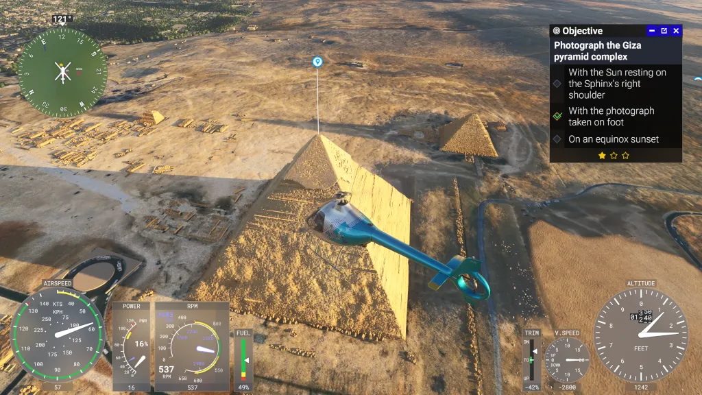 Εκτός του career και του free flight, το Microsoft Flight Simulator 2024 είναι εμπλουτισμένο και με άλλα modes, όπως activities, challenge league, αλλά το προσωπικό αγαπημένο μου είναι το world photographer. Σε αυτό το έχετε τη δυνατότητα να πετάξετε πάνω από τα διασημότερα landmarks του κόσμου, προσπαθώντας να βγάλετε εντυπωσιακές φωτογραφίες, με την κάθε «πίστα» να ζητά διαφορετικά requirements για να λάβετε όσα περισσότερα αστεράκια μπορείτε. Στο σύνολο του το game της Asobo Studio μπορεί να θεωρηθεί πλήρες, αφού πέρα ένα σωρό modes, που μπορούν να απασχολήσουν κάποιον για αρκετές ώρες, υπάρχει και μεγάλη ποικιλία στα είδη των αεροπλάνων, όχι όμως τόσο στον συνολικό αριθμό τους. Μέχρι στιγμής το market για αγορά νέων αεροσκαφών είναι κλειστό, και περιμένω με ανυπομονησία να δω τις τιμές που θα έχει, αφού κατ’ εμέ οι δυσθεώρητες τιμές του αντίστοιχου store του προηγούμενου παιχνιδιού της σειράς ήταν και το μελανό του σημείο.
