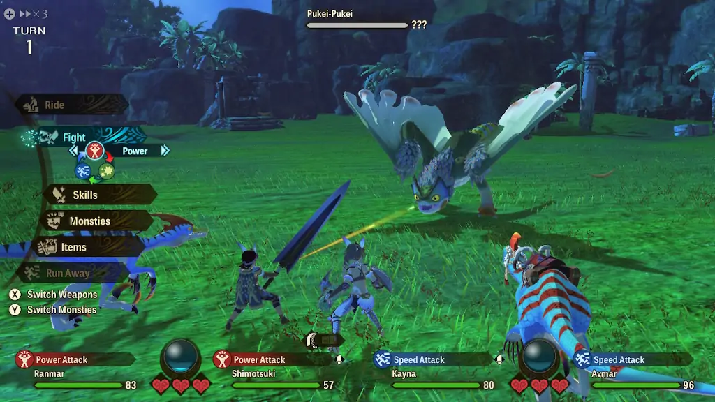 Στο κάτω-κάτω της γραφής, μερικοί απλά γουστάρουν να εκτρέφουν τερατόμορφες παρουσίες, δίχως διάθεση συναισθηματικής σύνδεσης ή επένδυσης χρόνου προς εκπαίδευση γύρω από το gameplay. Και εδώ το Wings of Ruin αριστεύει, διότι όσο ωμό και αν ακουστεί, στέκεται χωρίς ντροπή ως καθαρόαιμο Pokemon game, που έχει όμως πολλές στρώσεις περιτυλίγματος από τα στοιχεία που βοήθησαν τη σειρά Monster Hunter να ακμάσει ανά τα έτη. No joke, εδώ δεν έχουμε κυνήγια και σφαγές, αλλά κανονικότατο δεινο-μάζωμα, με στόχο τη στρατολόγηση ενός ισχυρού line-up από Monsties, για να σας βοηθήσουν στη μάχη, αλλά και στην εξερεύνηση του σημαντικά μεγαλύτερου κόσμου του. Νόμιζα πως με βάρεσε η ζέστη όταν συνειδητοποίησα το πόσο εκτενής είναι ο χάρτης του Wings of Ruin, κατουρώντας μέχρι πνιγμού τον original τίτλο του 3DS. Όταν δε μελέτησα την ποικιλία τεράτων που είναι διαθέσιμα για να ιππεύσω(;) ξεγελάστηκα προσωρινά πως επρόκειτο για ηλίαση.