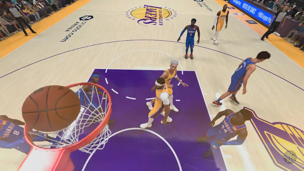 Πλέον κάθε κίνηση, κάθε εναλλαγή κατεύθυνσης και κάθε καλάθι έχει ένα ειδικό βάρος. Το κερδίζεις, δεν πρόκειται να μπει απλά για να μπει. Τo gameplay έχει εξομαλυνθεί σε ακραίο βαθμό και δεν υπάρχει κανενός είδους lag ή delay. Δεν ήταν λίγες οι φορές που σουτάραμε αμαρκάριστοι, με καλές προϋποθέσεις αλλά κάπως αυτό το σουτ θα χανόταν, ακόμα και με perfect release. Πραγματικά από τις πρώτες ώρες του τίτλου υπήρχε μια ισορροπία στο gameplay και ένιωσα τρελή γαλήνη μπαίνοντας στο πρώτο μου online ματσάκι. Είχα τον Kobe, κάλεσα σκριν, πήρα το roll και έβγαλα ένα alley-oop στον Shaq που ‘κατεδάφισε’ την μπασκέτα και αντίστοιχα οι σχολιασμοί, το διχτάκι, οι πανηγυρισμοί, όλα ήταν σαν την πραγματικότητα. Ρεαλιστικά δεν έχει υπάρξει κάτι άλλο επαναστατικό που δεν έχουμε ξαναδεί. Μικρο-αλλαγές στο shot meter και στο green release, κάποιες διαφορετικές είσοδοι για εκτέλεση combos, alley ops κλπ, τίποτα το φανταχτερό. Και έτσι θα έπρεπε να είναι. Δεν ζητάμε κάθε χρόνο να ανακαλύπτουν την Αμερική, αλλά ζητάμε μια ολοκληρωμένη και φυσική εμπειρία. Και αυτό ακριβώς έχουμε φέτος.