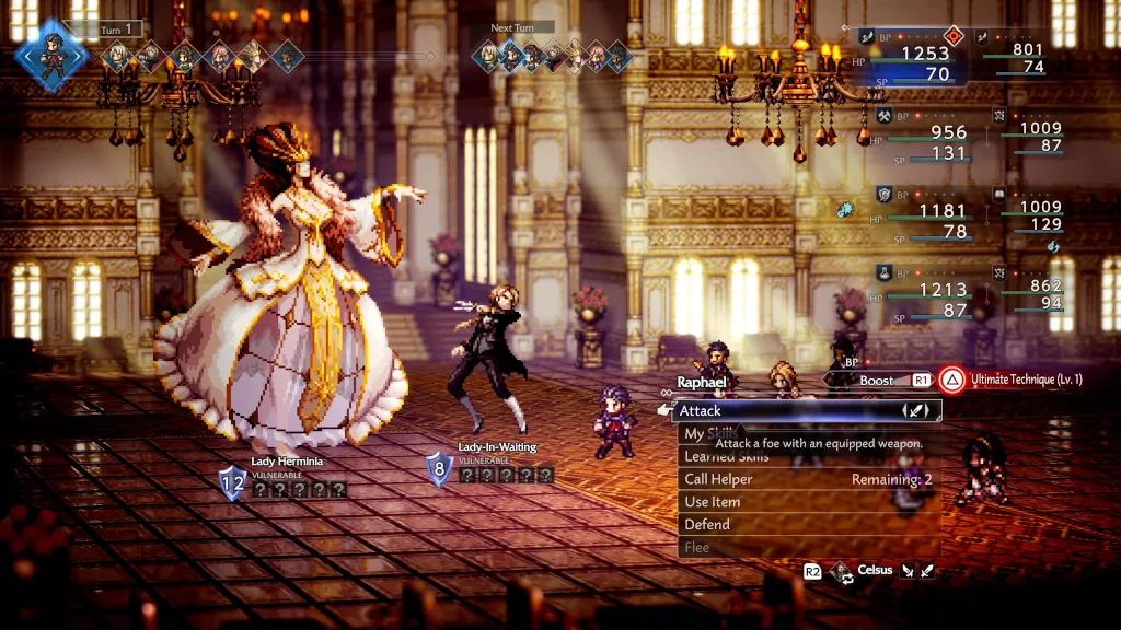 Η ομάδα μας πλέον δεν θα αποτελείται από μια τετράδα, αλλά από μια οκτάδα! Πιστή στο όνομα του Octopath Traveler, ο νέος μηχανισμός στη μάχη είναι η άμεση εναλλαγή μεταξύ 8 ηρώων, έτσι ώστε να δοθεί μεγαλύτερο βάθος στην τακτική μας και να γίνουν οι μάχες πιο συναρπαστικές. Έχει παραμείνει ανεπηρέαστο το breaking guard σύστημα από τα προηγούμενα παιχνίδια, η σπέσιαλ κίνηση του κάθε ήρωα ξεχωριστά και τα Boost Points που δίνουν έξτρα απλές επιθέσεις ή έξτρα δύναμη στις ικανότητες. Μοναδική εξαίρεση είμαστε εμείς, δηλαδή ο εκλεκτός, που κουβαλάει πολλαπλές ειδικές ικανότητες. Η μάχη είναι πολύ γρήγορη και επιβραβεύει την τακτική και όχι το all out attack –τιμάει τον πυρήνα ενός στρατηγικού JRPG.