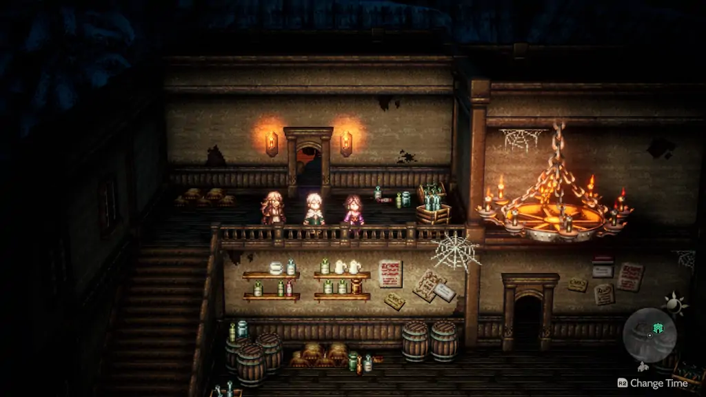 Αυτό ισχύει και στις πόλεις, ενώ η νέα προσθήκη κύκλου ημέρας και νύχτας δίνει επιπλέον πράγματα να κάνουμε. Εδώ έχουμε τα path-actions του κάθε χαρακτήρα που δίνουν λύσεις για όλα τα γούστα και επιτρέπουν να κάνουμε πληθώρα πραγμάτων, όπως να αποσπάσουμε περισσότερες πληροφορίες από τους κατοίκους της πόλης, να πάρουμε/κλέψουμε ένα αντικείμενο από αυτούς, να τους προσλάβουμε για τη μάχη ή ακόμα και να τους πλακώσουμε στο ξύλο. Οι δυνατότητες αλλάζουν με τον κύκλο μέρας-νύκτας σε κάθε χαρακτήρα, άλλα ανοίγουν πολλά πράγματα να ανακαλύψουμε και να πάρουμε με αυτές (π.χ. μπορεί να πρέπει να αναισθητοποιήσουμε κάποιον για να περάσουμε μια πόρτα ή να κλέψουμε ένα αντικείμενο που πρέπει να δώσουμε για να συνεχίσουμε την ιστορία και ούτω καθεξής).