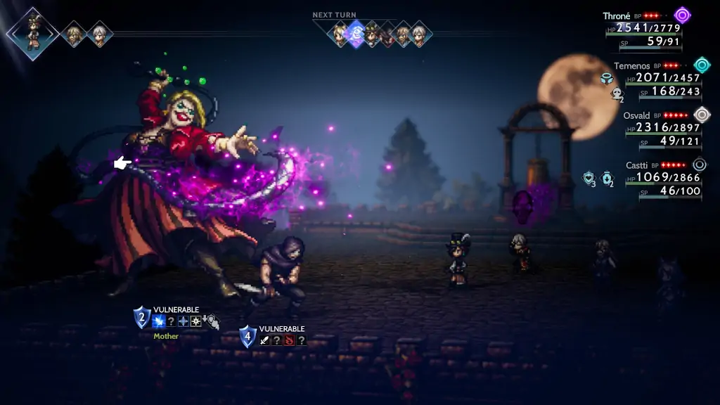Η μάχη δεν έχει πολλές προσθήκες, το sequel είναι ξανά ένα κλασικό turn-based RPG που μας παρακινεί να σημαδέψουμε κάποια weak points των εχθρών, που μπορούμε να εκμεταλλευτούμε για να σπάσουμε την άμυνά τους και να κάνουμε εξτρά ζημιά. Οι επιλογές των οπλών ανοίγουν μεταξύ σπαθιού, τόξου ή και μαγείας που αποτελείται από έξι βασικά στοιχεία: φωτιά, πάγος, άνεμος, ηλεκτρισμός, μαγεία σκότους και φωτός. Η πιο σημαντική προσθήκη είναι ο μετρητής “Latent Power” που φορτίζεται όταν δεχόμαστε ζημιά ή σπάμε την άμυνα από έναν εχθρό και δίνει στους ήρωες μας πρόσβαση σε πιο ισχυρές και μοναδικές δεξιότητες. Για παράδειγμα, όταν γεμίζετε τον μετρητή του Temenos, όλες οι επιθέσεις του μπορούν να σπάσουν την άμυνα του αντιπάλου (αγαπημένο Latent Power).