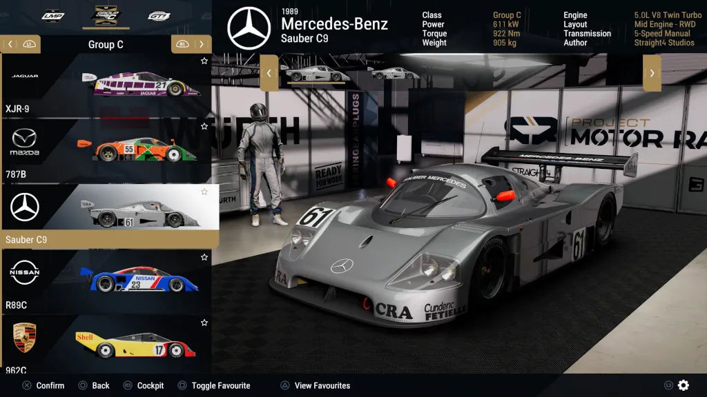 Για να λέμε του στραβού το δίκαιο, ναι υπάρχουν αυτοκίνητα που είναι πιο βιώσιμα στην πίστα. Αυτοκίνητα όπως το Mercedes Sauber C9, που έχει πολύ μεγάλο μήκος στο διαφορικό του. Αυτό σημαίνει πως οι ταχύτητες είναι μεγάλες και μπορείς με δευτέρα να φτάσεις τα 170 χιλιόμετρα. Εδώ οι στροφές ήταν λίγο πιο εύκολες.