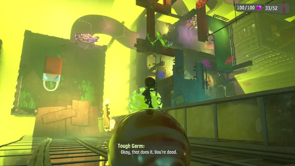 Όσο διασκεδαστικούς και αν βρήκα τους διάφορους κόσμους, δεν παύουν να έχουν και αυτοί τα ελαττώματά τους. Ο ρυθμός είναι πολλές φορές αυτό που χάνεται, αφού συχνά δημιουργούνται μεγάλα κενά ανάμεσα στους κόσμους, με το open world κομμάτι να χωλαίνει σε σημεία. Επίσης το pacing είναι ικανό να χαθεί και μέσα στους κόσμους, με κάποιους από αυτούς να είναι μεγαλύτεροι από ότι θα έπρεπε. Χαρακτηριστικό παράδειγμα, ένα επίπεδο όπου έπρεπε να πάρω μέρος σε έναν διαγωνισμό μαγειρικής και σαν άλλος Άκης Πετρετζίκης να εντυπωσιάσω με τα πιάτα μου τους κριτές, όπου μαζί με τον παρουσιαστή ήταν μαριονέτες. Ναι μεν το συγκεκριμένο επίπεδο ήταν πρωτότυπο και διαφορετικό από τα άλλα, όμως η μεγάλη έκταση του με έφθασε σε σημείο να επιθυμώ να τελειώσει. Επίσης ελπίζω με το παράδειγμά μου κάνω σαφές το ποσό σουρεαλισμό διαθέτει το παιχνίδι.