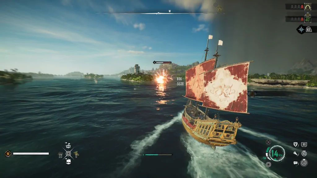 Το combat system του παιχνιδιού δεν είναι κάτι το πολύπλοκο. Άπαξ και έπιανες το νόημα ήσουν έτοιμος να πλεύσεις στις 7 θάλασσες, ωστόσο αυτό δεν πάει να πει ότι θα είναι και πάντα εύκολο, αφού πολλές φορές σε κάποια ναυμαχία μπορεί αναπάντεχα να αναδυθεί κάποιος εχθρός και να γυρίσει την τροπή των κυμάτων. Σε εκείνο το σημείο αποκτά σημασία το «build» του καραβιού σου, ο τρόπος παιχνιδιού, ο χειρισμός του πλοίου και η πλεύση που θα έχεις, μιας και ο αέρας δεν έρχεται πάντα από το ίδιο σημείο, αλλά και η προετοιμασία που θα έχεις κάνει. Αυτά θα κρίνουν αν θα βγεις νικητής ή αν θα βρεθείς στον πάτο της θάλασσας.