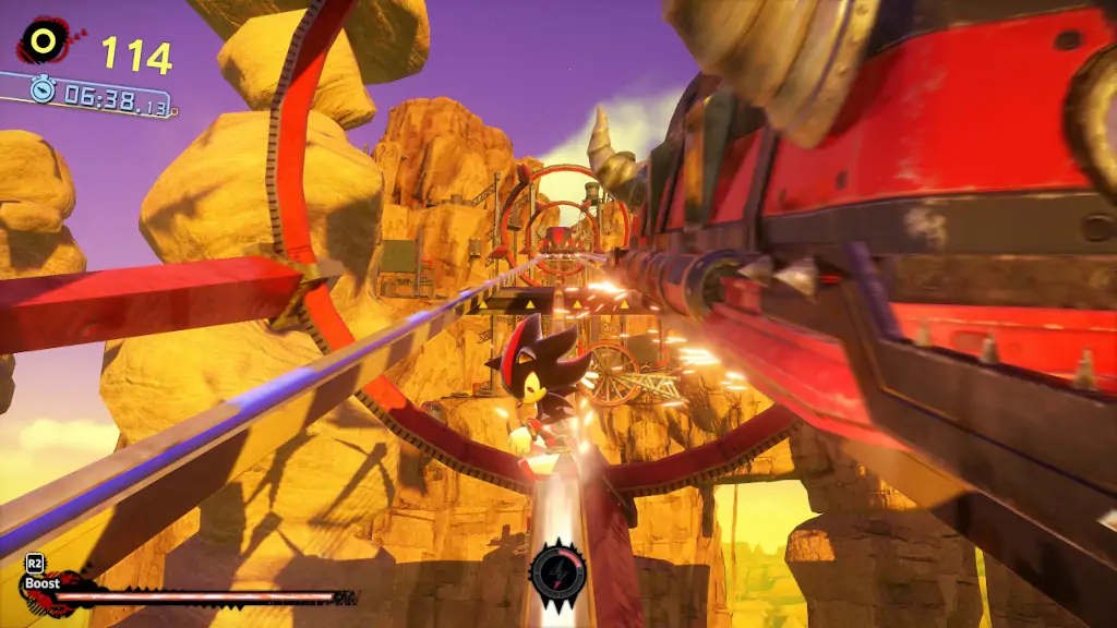 Ο Shadow, σαν χαρακτήρας, είναι πιο σοβαρός, πιο ευερέθιστος και αυτό αποτυπώνεται στο επίσης θυμωμένο gameplay του Shadow Generations. Η διαδρομή μεταξύ του Sonic και του τερματισμού συνήθως έχει χρώμα, χορευτικό ρυθμό και ηρωικό κλίμα, τη στιγμή που η ίδια απόσταση ανάμεσα στον Shadow και την ολοκλήρωση ενός level χωρίζουν οι εκρήξεις, τα γκρεμίσματα και ο όλεθρος που σπέρνει. Είναι πολύ πιο fun-to-play σαν ελεγχόμενος χαρακτήρας, δίνει νεύρο στο άνευρο gameplay του Sonic, είναι πολύ πιο metal τύπος, είναι η ηλεκτρική κιθάρα του Sonic franchise. Ακριβώς επειδή το Shadow Generations αφορά τον ίδιο και έχοντας φτιαχτεί για πιο σύγχρονα συστήματα, το παιχνίδι και η οθόνη τρέχουν πιο γρήγορα από ό,τι προλαβαίνει το μάτι. Γενικά, σε οποιοδήποτε Sonic game, όταν σταματάς το τρέξιμο δικαίως νιώθεις ότι χάνεις, ότι κάτι κάνεις λάθος -πιθανότατα ισχύει- και το μεγαλύτερο ατού αυτής της επέκτασης αποτελεί το ότι ο Shadow εδώ είναι οριακά ασταμάτητος.
