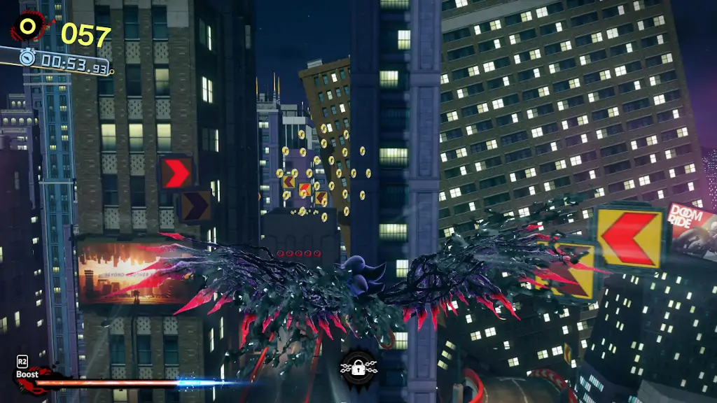 Σε αυτή την αίσθηση υπεροχής συμβάλλουν οι νέες δυνάμεις που αποκτά ο Shadow. Πέραν του ότι μας αφήνει για πρώτη φορά να χρησιμοποιήσουμε υπέρ μας το Chaos Control -συνήθως γινόταν εναντίον μας- ο Shadow αποκτά και μερικά Doom Powers. Αυτές οι σκοτεινές κινήσεις που πυροδοτούνται απευθείας από το συντριπτικό DNA του Shadow ξεκλειδώνουν νέα platforming mechanics, όπως το σερφάρισμα επί νερού, πτήσεις με Venom-like φτερά, το τρύπημα των εθχρών με τα Doom Spears, και πολλά ακόμη. Και κάπως έτσι, η επιστροφή στον έλεγχο του Sonic για το άλλο μισό game φαντάζει σαν να γυρνάμε από ένα πλήρες game… στο demo του. Τα Doom Powers εξελίσσουν όσο χρειάζεται τη φόρμουλα, καταφέρνοντας στο μεταξύ να θεωρούνται μερικώς προαιρετικές για όσους κοιτούν μόνο προς το τέλος ενός level, αλλά απαραίτητες για όσους επιθυμούν τη συλλογή του S-rank.