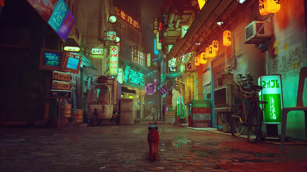 Παραμερίζοντας το βασικό μου παράπονο, θα επαινέσω το Stray για το world-building του. Μπορεί να είναι αρκετά κλισέ σε στιγμές, αλλά είναι καλά εκτελεσμένο κλισέ. Για άλλη μια φορά, η εμπειρία εξυψώνεται πάνω στους ώμους της αισθητικής της. Πέραν της ομορφιάς και της λεπτομέρειας, η BlueTwelve έχει διαπρέψει και στο πιο λειτουργικό visual design του κόσμου. Παρότι διαθέτεις τη δυνατότητα να μεταφράζεις τις ξενόγλωσσες οδηγίες που συναντάς σε πινακίδες, γκράφιτι και φωτεινές επιγραφές, βρήκα τη δόμηση του χώρου και των περιεχομένων του καθαρή και καθοδηγητική από μόνη της. Σε ένα παιχνίδι με πολλά quests του πέρα δώθε, ελάχιστες φορές ένιωσα ότι χάνομαι. Τα ξεκάθαρα ορόσημα και οι διακριτές μικροταυτότητες κάθε σημαντικής τοποθεσίας με βοήθησαν να διαμορφώσω έναν αξιοπρεπή νοητικό χάρτη της κάθε περιοχής, ώστε η εμπειρία μου να κυλά ομαλά.