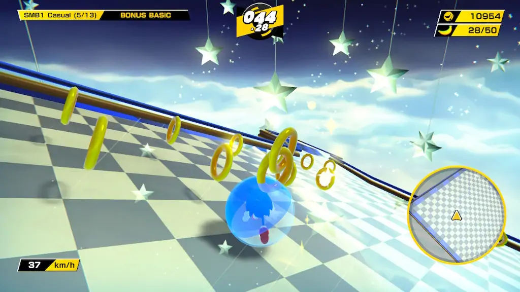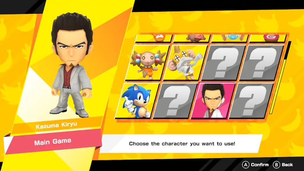 Η αγαπημένη μου προσθήκη βέβαια είναι η δυνατότητα να ξεκλειδώνουμε διαφορετικούς χαρακτήρες με τους πόντους που κερδίζουμε όταν τελειώνουμε μία πίστα. Ανάμεσά τους είναι επιπλέον χαρακτήρες από το Super Monkey Ball αλλά ακόμη πιο ενδιαφέρουσα είναι η εμφάνιση πολλαπλών εμβληματικών χαρακτήρων της SEGA. Χαρακτήρες όπως ο Sonic και ο Tails ( από το Sonic The Hedgehog) και ο Beat (από το Jet Set Radio) έχουν μοναδικά ηχητικά εφέ και αντί για μπανάνες συλλέγουν χρυσούς κρίκους και δοχεία ψεκασμού αντίστοιχα. Η αλήθεια είναι όμως πως πρώτα επέλεξα να ξεκλειδώσω τον Kazuma Kiryu, τον πρωταγωνιστή της σειράς Yakuza. Η προσθήκη του ήταν μια ευχάριστη έκπληξη για μένα. Θέλω να φαντάζομαι πως βρέθηκε εδώ ακολουθώντας κάποιο από τα χαρακτηριστικά αλλόκοτα side quest του game του. Ολίγον δυσάρεστο είναι το γεγονός ότι δε μπορούμε να τροποποιήσουμε την εμφάνιση τους. Sega, έχω δει τον Kiryu τουλάχιστον 7 φορές σε 7 διαφορετικά παιχνίδια να αφαιρεί με μία κίνηση το σακάκι και το πουκάμισό του, ώστε να αναδείξει το τατουάζ στην πλάτη του και να φορά μια στολή ναύτη με κράνος που θυμίζει μανταρίνι με ένα μικρό μπολ με noodles πάνω του. Νομίζω πως δε θα ανατιναχθεί το σύμπαν αν μου δινόταν η ικανότητα να του βάλω κάποιο αξεσουάρ.