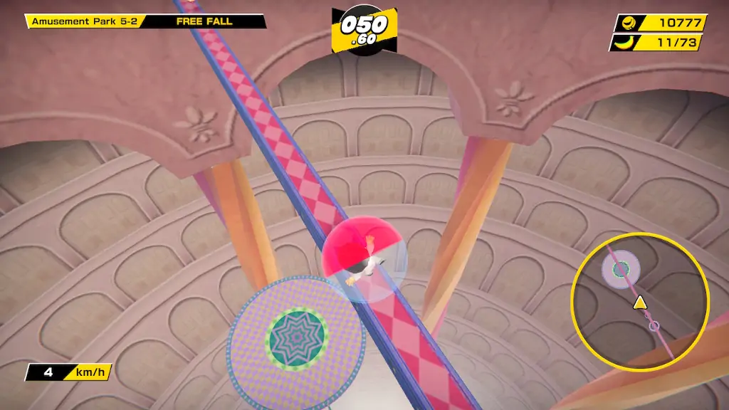 Σε ένα από αυτά έπρεπε να τοποθετήσω τον χαρακτήρα μου σε μία εσοχή που θα με έστελνε στο κέντρο της πίστας, πάνω σε έναν ψηλό κυλινδρικό στύλο. Έπρεπε να τον διανύσω μέχρι πάνω πάνω και μετά να πέσω προς το γκολ που ήταν στο πλάι κολλημένο 90 μοίρες έναντι του στύλου. Το πρόβλημα είναι πως με την περιοριστική και ατσούμπαλη κάμερα (σε ένα παιχνίδι οπού γέρνουμε και τον ίδιο το στάδιο) ήταν αδύνατον να γνωρίζω κάθε φορά που εκτοξευόμουν στον αέρα εάν έπεφτα προς την σωστή μεριά. Όλα αυτά καθώς το ρολόι έτρεχε. Μακάρι να ήταν και το μοναδικό παράδειγμα πίστας που με εξόργισε. Όσο συνέχιζα να παίζω βίωσα την εξέλιξη του ανθρώπου αντίστροφα. Όλο και περισσότερο κάθε φορά που ερχόμουν αντιμέτωπος με τέτοιου είδους προβλήματα, συμπεριφερόμουν εγώ περισσότερο σαν πίθηκος παρά η μαϊμού εντός της μπάλας. Κάθε φορά που η κάμερα δε συνεργαζόταν όπως ήθελα, και κάθε φορά που η μπάλα μου ακουμπούσε ελάχιστα την επιφάνεια μιας γωνίας και έφευγε εκτός σταδίου αγανακτούσα. Γνωρίζω πως υπάρχει η επιλογή όχι μόνο να κάνουμε ολόκληρο το στάδιο ασύλληπτα εύκολο ενεργοποιώντας το slow-motion ή και να το κάνουμε skip. Τι σημαίνει πρακτικά όμως αυτό; Πως η αμοιβή μου είναι να παίξω λιγότερο ή να μου κρατήσει το παιχνίδι το χεράκι επειδή κάποια level είναι σχεδιασμένα από μισάνθρωπους;