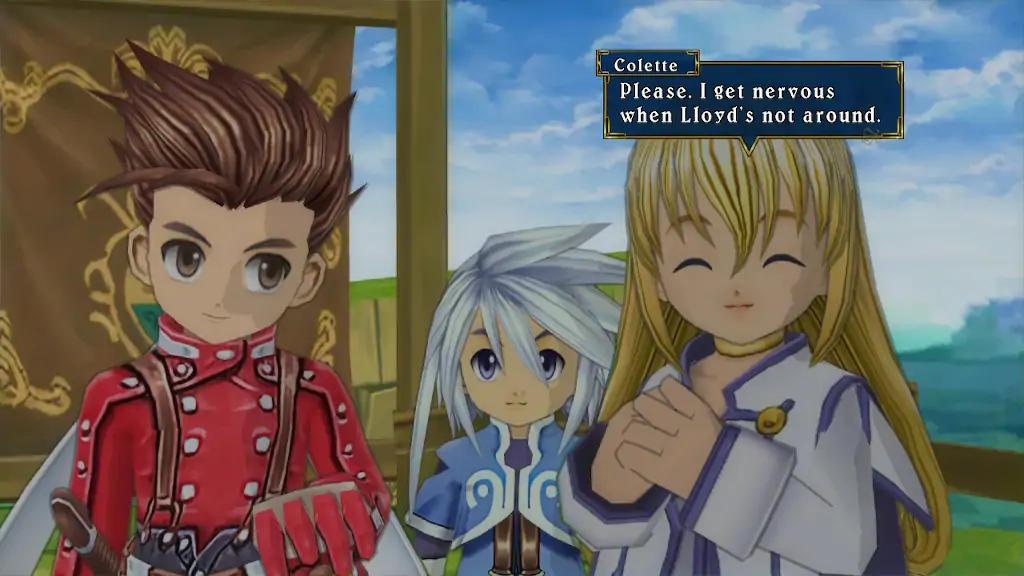 Ο Loyd είναι ένας άτακτος αλλά καλόκαρδος έφηβος, ο οποίος μετά από μία αναπάντεχη καταστροφή που προκαλεί άθελά του στο χωριό του αποφασίζει, μαζί με τον καλύτερο του φίλο Genis, να ακολουθήσει και να βοηθήσει την Collete να φέρει εις πέρας τον στόχο της. Η ιστορία του Tales of Symphonia μου άρεσε πολύ, κυρίως επειδή προσφέρει το συναίσθημα μιας μεγάλης περιπέτειας-ταξιδιού που εγώ ο ίδιος ψάχνω στα RPG’s, αλλά και ένα μεγάλο και αξιομνημόνευτο cast χαρακτήρων. Το Tales of Symphonia, όπως και όλα τα ‘Tales of’ games, περιέχει skits στα οποία με το πάτημα ενός κουμπιού μπορείς να δεις extra μοναδικούς διαλόγους ανάμεσα στους χαρακτήρες ανάλογα το σημείο που βρίσκεσαι στην ιστορία. Αυτό όχι μόνο βοηθάει στο να μάθουμε παραπάνω πράγματα για το παρελθόν κάποιων χαρακτήρων, αλλά προσθέτει και μια δυναμική μεταξύ τους.