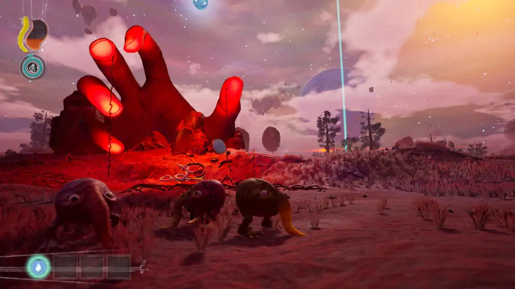 Όσον αφορά στα survival mechanics, καθ’ όλη τη διάρκεια του Eternal Cylinder ένιωθα ότι η πίεση της ικανοποίησης των βιοτικών μου αναγκών δεν ήταν παρά μια ενόχληση. Η τροφή και το νερό ήταν συνήθως άπλετα και συλλέγονταν χωρίς ιδιαίτερη εξερεύνηση. Απλά έπρεπε να το θυμάμαι και να σπαταλάω χρόνο για να το κάνω. Το inventory system έκανε αυτή τη λούπα ακόμα πιο οδυνηρή. Τα περισσότερα Trebhum μου είχαν λίγο χώρο στα σωθικά τους, με αποτέλεσμα να πρέπει να αλλάζω συνεχώς από το ένα στο άλλο και να κάνω micromanage τη χωρητικότητά τους. Και μιας που λέμε για τα Trebhum, πραγματικά αισθάνομαι ότι όσο περισσότερα είχα τόσο πιο κουραστικό γινόταν το παιχνίδι. Υπήρχαν κάποιες ωραίες στιγμούλες έντασης, όταν κουτρουβαλάγαμε όλα μαζί με την ψυχή στο στόμα, μακριά από κάποιο τεράστιο, κινούμενο στόμα, αλλά συνήθως κάθε φορά που έχανα ένα, απλώς έκανα load στο πιο πρόσφατο autosave μου. Να χάσω ένα Trebhum και όλα τα mutations του, που μαζί μου πήραν ίσως και μισή ώρα να τα μαζέψω ή να χάσω 5-10 λεπτά πρόοδού; You tell me.