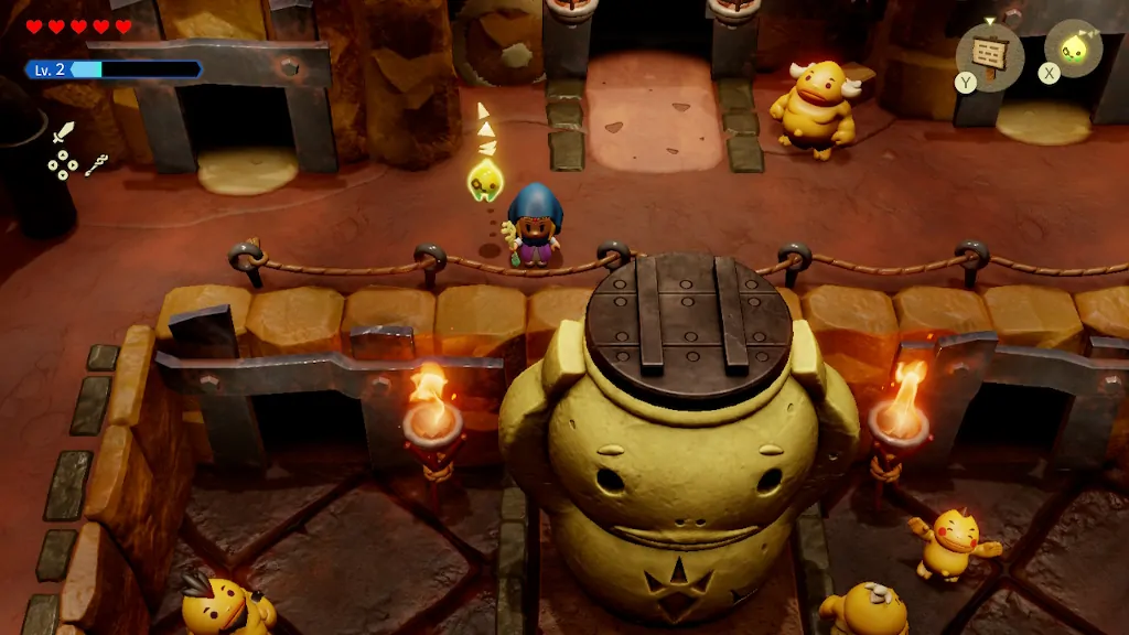 Σίγουρα τα πρώτα dungeons αποτελούν τίμιες δοκιμασίες μέχρι να συνηθίσει κάποιος τις δυνατότητες της Zelda, αλλά ομολογουμένως από εκεί και έπειτα κάποιοι βασικοί μηχανισμοί, όπως τα 4 κρεβάτια στην σειρά (DIY σκάλα που χωράει σχεδόν παντού), λύνουν ένα μεγάλο ποσοστό από τα προβλήματα που παρουσιάζει το παιχνίδι. Αυτό –αν το έχεις ανακαλύψει– σε βασανίζει με το δίλημμά του αν αξίζει να ξεφύγεις από τα υποτιθέμενα όρια του παιχνιδιού ή όχι. Συναντάται συχνά η λογική των shrines από τα προηγούμενα Zelda στο Switch, όπου υπάρχουν συνήθως περισσότεροι από ένας-δύο τρόποι να λυθούν οι περισσότεροι γρίφοι. Γρήγορα βέβαια σφίγγει τα ηνία το design, με τα τελικά dungeons να έχουν μερικά αρκετά απαιτητικά στοιχεία, χωρίς όμως να φτάνει ποτέ στο έπακρο δυσκολίας το γενικότερο game design του παιχνιδιού. Ενώ προσφέρονται combat challenge rooms, που όντως φτάνουν το σύστημα στα όριά του, θα ήταν σημαντικό κάποιο από τα dungeons να είχε σχεδιασμό βάσει του οποίου όλα τα δωμάτια μοιράζονται έναν κοινό μηχανισμό (π.χ. Water Temple στο Ocarina of Time) που συνήθως απαιτούν περισσότερη σκέψη και προσχεδιασμό. Εν ολίγοις δόθηκε πολύ σημασία στα dungeons, με κάποια να ξεχωρίζουν περισσότερο από άλλα, όμως υπάρχει ακόμα περιθώριο ανάπτυξης.