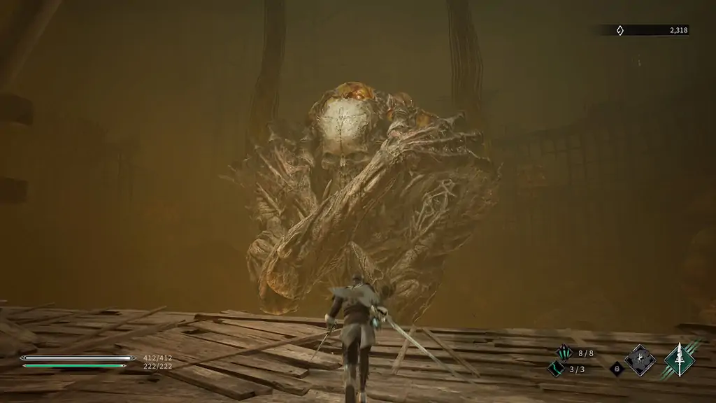 Το combat του Thymesia παίρνει κομμάτια των παιχνιδιών τις FromSoftware, ιδιαίτερα των Bloodborne και Sekiro, και τα αναμιγνύει για να φτιάξει ένα ιδιαίτερο κράμα μηχανισμών. Και χωρίς καμία αμφιβολία, το κάνει εξαιρετικά καλά. Όλοι οι εχθροί έχουν δύο ειδών “ζωή”. Ένα συνηθισμένο άσπρο health-bar και ένα πράσινο με όνομα Wound. Η Wound μπάρα βρίσκεται “πίσω” από το health και εμφανίζεται μόλις ο εχθρός δεχτεί damage στη κανονική μπάρα. Παραμένει εκεί για λίγα δευτερόλεπτα έως ότου το health bar αρχίζει να γεμίζει ξανά, μέχρι ώστε να ξανακαλύψει το Wound. Ο σκοπός του παίκτη, λοιπόν, είναι να τραυματίσει τον εχθρό με τα κλασικά light attacks και, έπειτα, να μειώσει τη Wound μπάρα εκτελώντας heavy attacks ή καλύτερα, στον κόσμο του Thymesia, Claw Attacks. Παρά τις αρχικές μου ανησυχίες, ο τρόπος που συνδυάζονται τα light με τα claw attacks είναι απροσδόκητα ομαλός. Το flow των μαχών είναι γρήγορο και ικανοποιητικό, με τα parries να παίζουν τεράστιο ρόλο στην ταχεία ανταλλαγή επιθέσεων. Mία, ακόμη, ιδιαίτερα εύστοχη επιλογή των devs είναι το μεγάλο range των Claw Attacks. Με τον Corvus και τους εχθρούς να κινούνται και να αποφεύγουν τόσο γρήγορα, ένας τρόπος να κλείνεις αστραπιαία την απόσταση είναι αδιαμφισβήτητα απαραίτητος, σε επίπεδο που χρησιμοποιούσα claw attacks ακόμη και αν ο εχθρός είχε μηδενικό εμφανές wound.