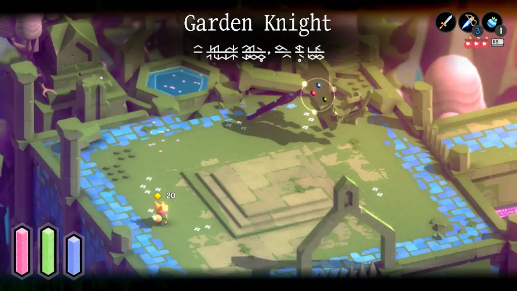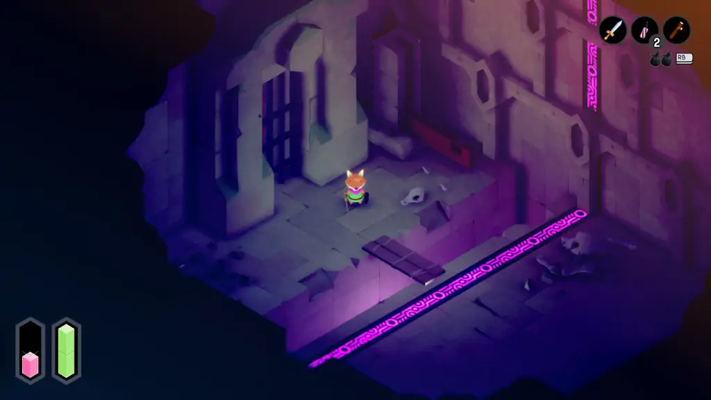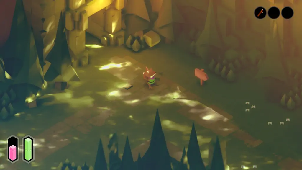 Σχετικά με τα respawn points, κάθε φορά που το αποτέλεσμα μιας μάχης κατέληγε στο τραγικό τέλος της μικρής αλεπούς, παρόμοια με τα Souls παιχνίδια και πάλι, υπάρχει το “bonfire system” βάσει του οποίου ο πρωταγωνιστής μας θα επανεμφανιστεί στον κόσμο μέσω ενός αγάλματος που έχουμε συναντήσει και έχουμε ενεργοποιήσει προηγουμένως, ενώ εννοείται πως όλοι οι αντίπαλοι που είχα σφάξει ανελέητα έκαναν και αυτοί respawn πίσω στις θέσεις τους. Εδώ ίσως μπαίνει το μοναδικό δυσάρεστο που μου έχει μείνει από την εμπειρία μου, το ότι εφόσον δεν υπάρχει σχεδόν καμία καθοδήγηση πέραν από εικόνες και χάρτες που μάζευα σιγά-σιγά στο instruction manual, πέρασα ατελείωτες ώρες προσπαθώντας να καταλάβω που πρέπει να κατευθυνθώ, αντιμετωπίζοντας τους ίδιους εχθρούς ξανά και ξανά έως ότου με σφάξουν ανελέητα και να κάνω respawn στο τελευταίο άγαλμα που ενεργοποίησα. Όλα όσα έχω αναφέρει μέχρι στιγμής για το combat αποτελούν σχεδόν ολοκληρωτικά την προκλητικότητα του παιχνιδιού, η οποία μεταφέρει σε κλάσματα δευτερολέπτου τον παίκτη από ένα όμορφο περιβάλλον με ευχάριστη μουσική στο background, σε έντονες μάχες γεμάτες άγχος και αδρεναλίνη. Σε γενικές γραμμές έχω να πω πως δεν περίμενα το ποσό διασκεδαστικό θα έβρισκα το σύστημα μάχης, το οποίο μεταβάλλεται από κάτι ρουτινιάρικο, το οποίο είναι οι εύκολες μάχες, σε στιγμές που απαιτείται σκέψη και υπολογισμός των κινήσεων του παίκτη, ανάλογα με τους αντιπάλους. Μιλώντας φυσικά για δυσκολία και μάχες, δεν μπορώ να παραλείψω αυτό που αναμφισβήτητα θεωρώ πως είναι το δυσκολότερο κομμάτι του Tunic. You all know where this is going.
