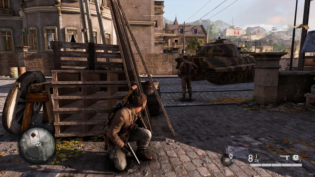 Θα ξεκινήσω μπαίνοντας κατευθείαν στο ψητό. Το Sniper Elite: Resistance δεν αλλάζει και πολλά πράγματα. Αυτά που αλλάζει όμως είναι θετικά και εμπλουτίζουν σε ένα βαθμό τον σύμπαν του παιχνιδιού. Ξεκινώντας από το περιεχόμενο, το παιχνίδι προσφέρει μία αρκετά καλογραμμένη και προσεγμένη ιστορία η οποία, παραμένοντας στη Γαλλία και στην περιοχή του Vichy, εξελίσσεται παράλληλα με αυτή του Sniper Elite 5 και αφορά τον εντοπισμό και την καταστροφή ενός υπερόπλου το οποίο θα βοηθήσει τους Ναζί να κερδίσουν τον πόλεμο, λίγο πριν την απόβαση στη Νορμανδία. Σε μία κίνηση φρεσκαρίσματος, ο πρωταγωνιστής μας δεν είναι πλέον ο Αμερικανός Karl Fairburne, αλλά ο Βρετανός συνάδελφος του Harry Hawker, τον οποίο είχαμε συναντήσει ως τον δεύτερο playable χαρακτήρα στο co-op των τελευταίων τριών Sniper Elite. Αν και στα χέρια μας έχουμε μία κλασσική πλοκή αυτή διαθέτει αρχή, μέση και τέλος που εκτελούνται αρκετά καλά και σύμφωνα με τον τόνο που έχει θέσει το παιχνίδι ήδη από την αρχή. Δυστυχώς, ο χώρος για να απλωθούν οι χαρακτήρες και οι σχέσεις του δεν είναι μεγάλος, με τα cutscenes να είναι λιγοστά, ωστόσο το voice acting είναι ζωντανό και διασκεδαστικό με την μετάβαση σε μία πιο vintage αισθητική κατά το debrief στην αρχή κάθε mission να βοηθάει τόσο στην ανακάλυψη των χαρακτήρων και της ιστορίας καθώς και της αισθητικής της εποχής και της περιοχής. Επίσης, άξια αναφοράς είναι και η απεικόνιση της πόλης του Vichy η οποία είναι πανέμορφη, θυμίζοντας περισσότερο μεσογειακή πόλη κατά τη διάρκεια της ημέρας λόγω των πολλών και φωτεινών χρωμάτων παρά πόλη της Κεντρικής Γαλλίας, ενώ το βράδυ εκπέμπει τη σοβαρότητα του πολέμου.